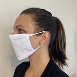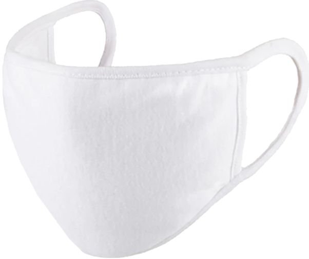 Mask, constructed of 2-ply 4.5oz. 100% combed ring white spun cotton jersey fabric material with white rib trim, cotton earloops, not NIOSH approved, standard Adult size, 200 each per pack/bag, 5 bags per case