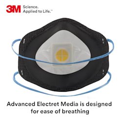 Combines P-series versatility with exceptional comfort and fit. Excellent choice in work environments that may contain oil aerosols. Suggested applications include grinding, sanding, sweeping, bagging, machining and other dusty/oily operations. Features 3M™ Cool Flow™ Exhalation Valve, comfortable faceseal and M-noseclip to help provide a custom fit and secure seal.