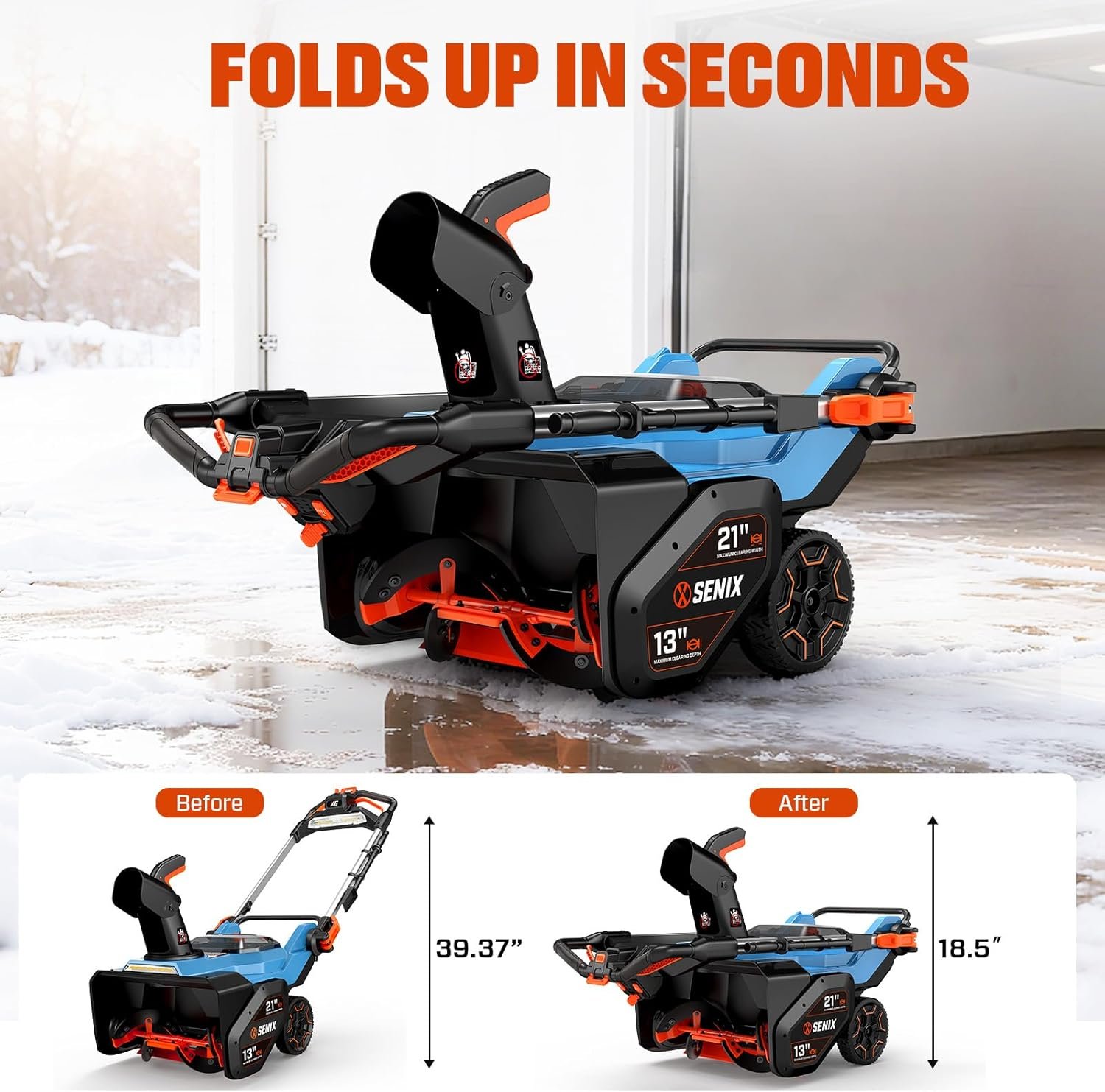 Be the first to review “SENIX 60V 21″ Cordless Snow Blower, Steel Auger, 3500W Brushless Motor, Heated Handle,13″ Depth, 45FT Throw Distance, LED Lights, 16000mAh Batteries(Single Box) & Dual Port Charger,1200lbs/min”