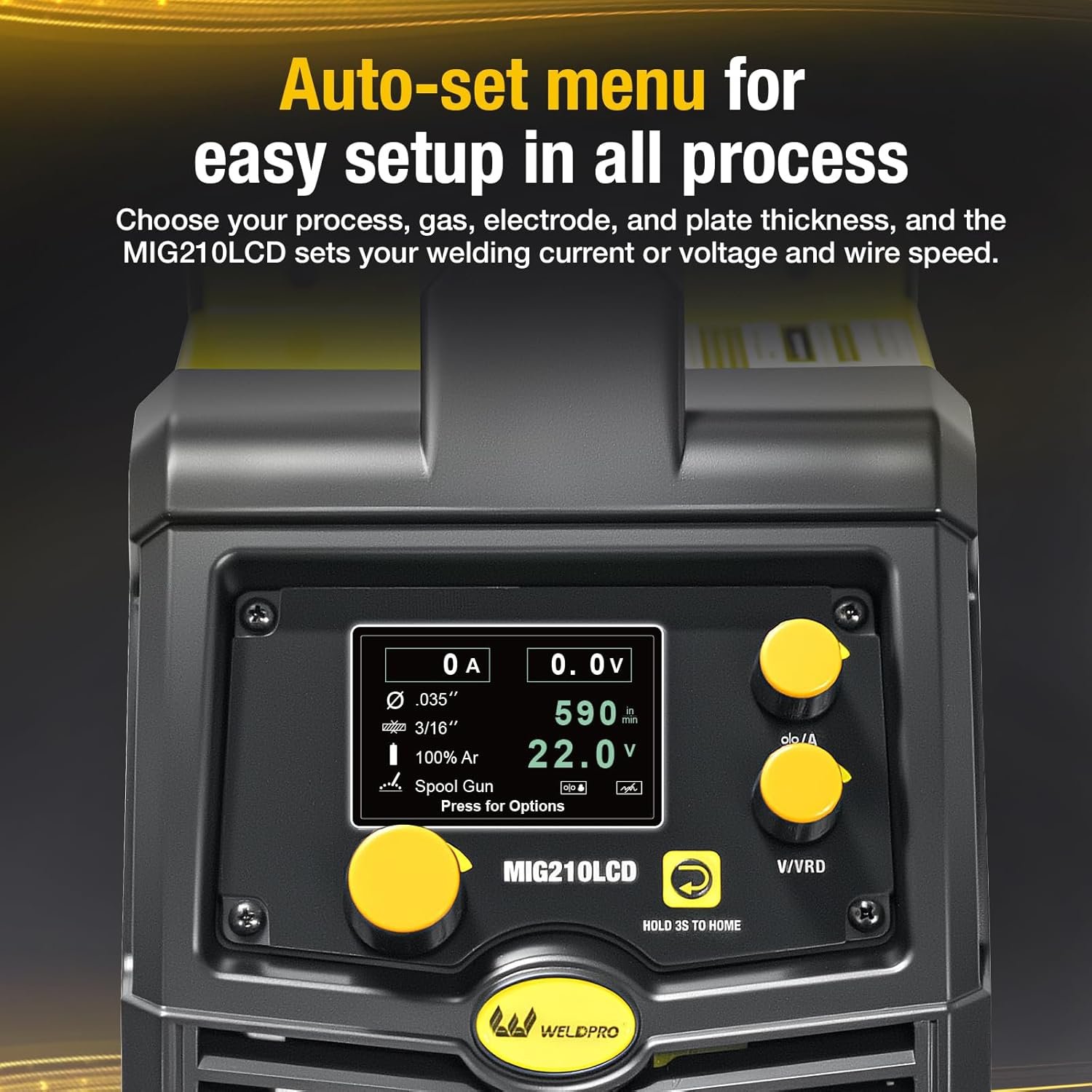 Weldpro 200A MIG Welder, 110V/220V Flux Core MIG Welder/MMA/TIG/Stick 5 in 1 Welding Machine with Spot Timer, IGBT Inverter Portable Gasless Welder Equipment, Aluminum Spool Gun Compatible